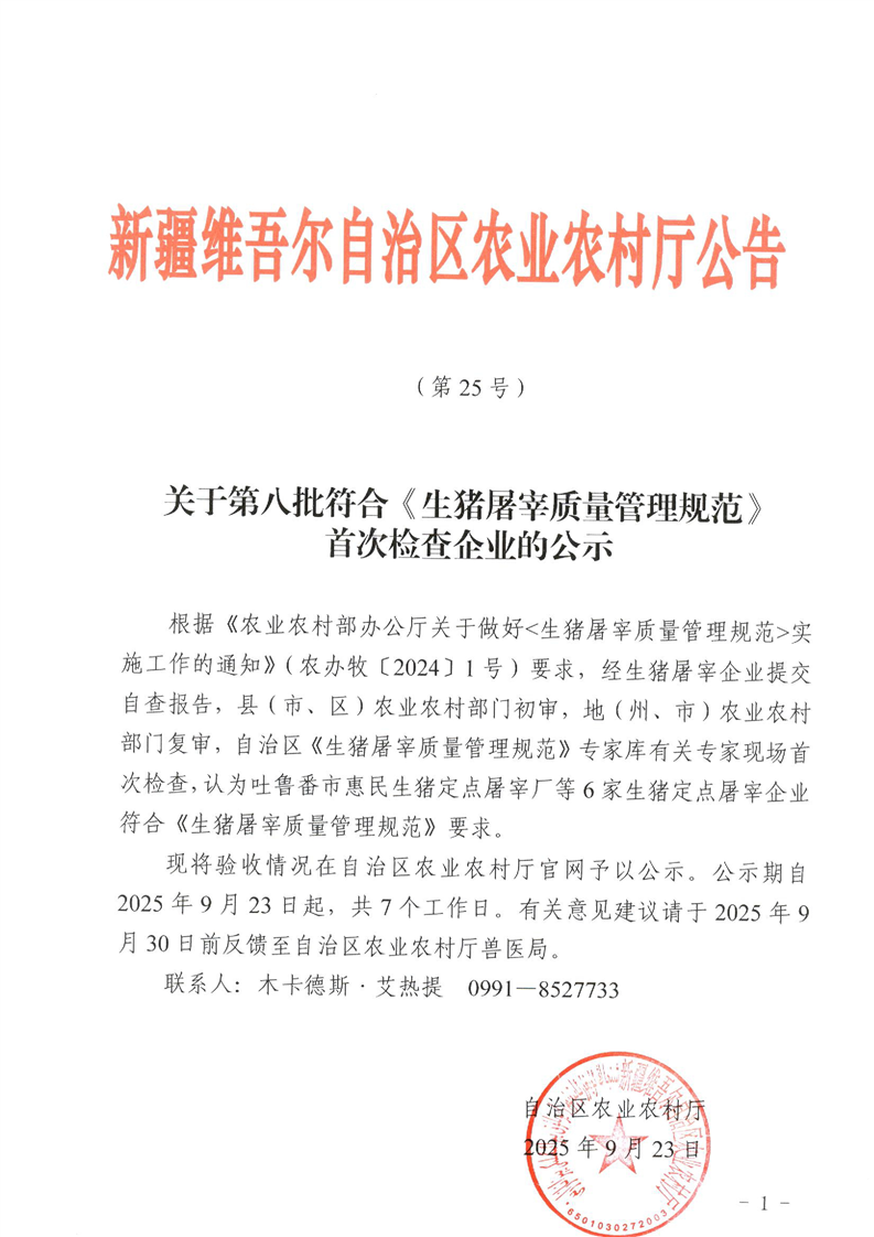 关于第八批符合《生猪屠宰质量管理规范》首次检查企业的公示 -银河官网